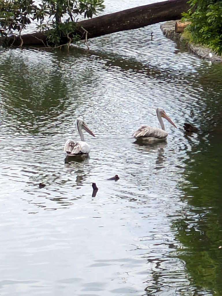 were ducks with a yellow or orange on their beaks, cormorants – one of them spreading its wings like the angel of the north – cormorants are the same the world over, flamingoes, herons and something I had not associated with India prior to 2010, pelicans. I entered a children’s playground to take pictures and then the Bala Hanuman Temple